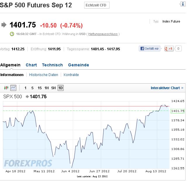 Wie gestern ausführlich erklärt..die 1400er Marke wackelt ! Und wir reden vom grössen INDEX Der Welt S&P 500 neben DOW !