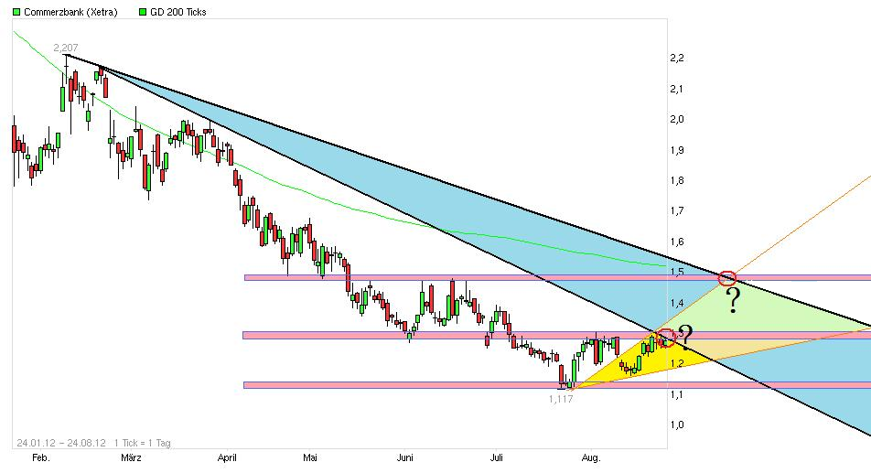 Wieso 1,40? Wenn der CoBa Kurs erstmal die Abwärtstrendlinie überwindet an der man jetzt exakt steht und dann auch noch die Widerstandsmarke von 1,30 klar nehmen würde auf SK, dann wäre wohl eher damit zu rechnen man läuft die Zeit danach weiter hoch bis in die Region um die 1,48 und nicht nur bis 1,40. Sollte die FED und die EZB die kommenden Wochen ihr Waffenarsenal nutzen, speziell die EZB nach dem 12.9. , dann würde der gesamte Börsenmarkt und besonders Finanzwerte in der Eurozone davon profitieren. Die laufende Aktien-Hausse ist ja schon zu einem guten Teil rein liquiditätsgetrieben. Wenn die Zentralbanken noch mehr "Öl" ins Feuer gießen ab Mitte September, dann würde der DAX nicht beim bisherigen Jahreshoch stehen bleiben, sondern darüber laufen, zumal man ja auch noch im einem US-Wahljahr ist und so die Kurse zusätzlich nordwärts drängen im Herbst. Von daher dürfte jetzt nach Ende der EarningsSeason die kommenden Wochen der Fokus klar auf den Zentralbanken liegen und der Hoffnung darauf das "geliefert" wird. Und scheinbar sieht man die Chancen gut, daß hier die Bazookas auch abgefeuert werden. Sieht man auch z.B. an der Entwicklung des Goldpreises in den letzten Tagen. Da wird schon fleißig die künftige Geldmengenvermehrung und die steigende Inflationsgefahr eingearbeitet im Kurs.