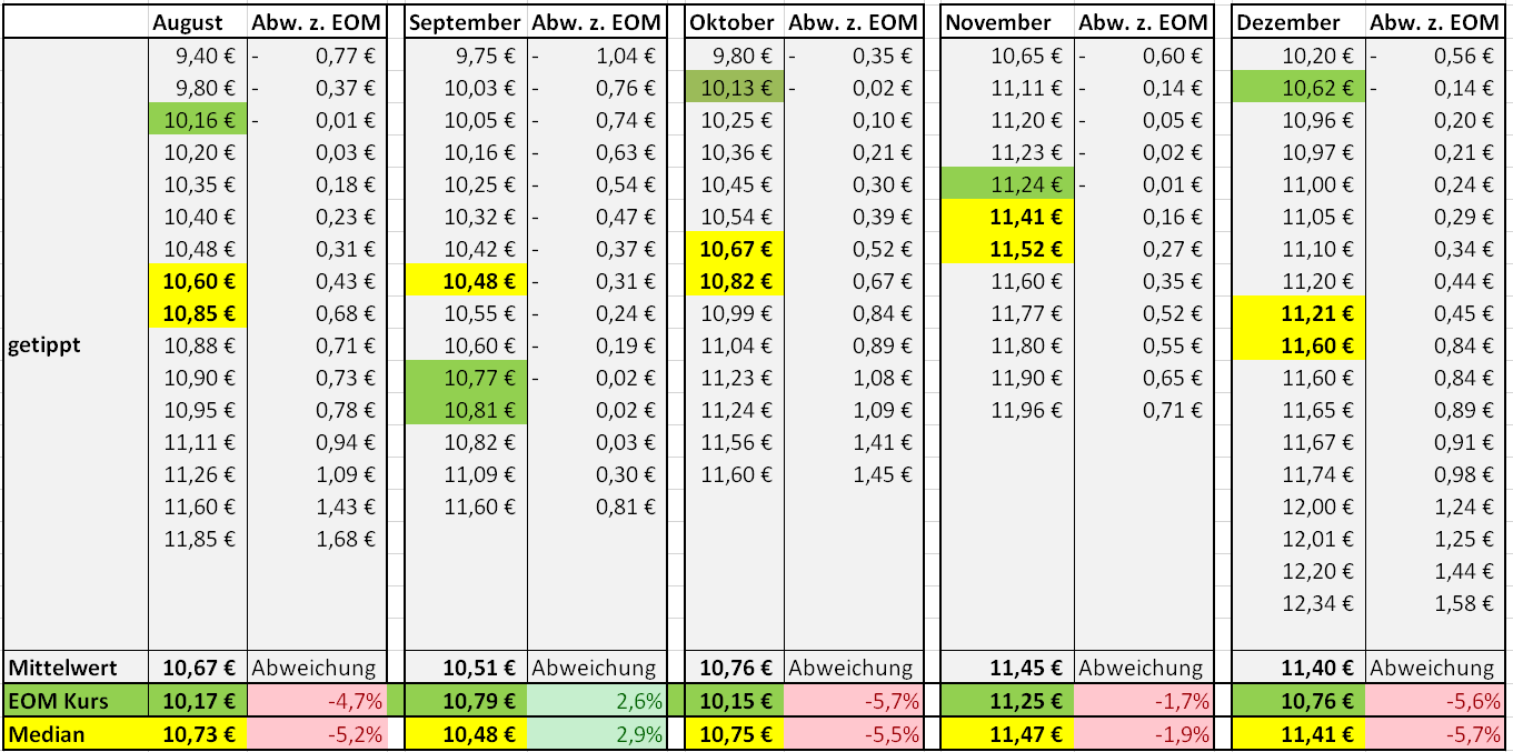 1. Getippt wird jeweils der Monats-Xetra-Schlusskurs (EOM).