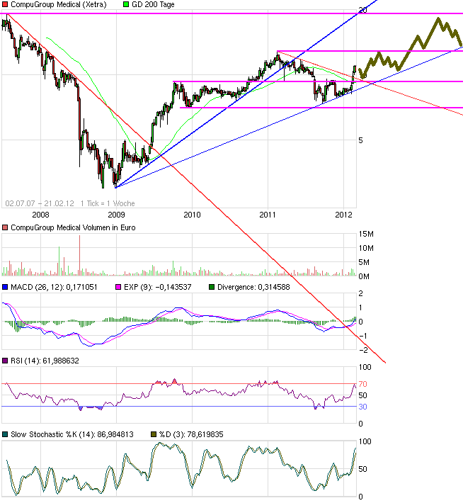 Durch den starken Kursanstieg hat die Aktie fast das Niveau von Anfang November erreicht. Nachdem das Management im Bericht über das dritte Quartal 2011 den Ausblick für das Gesamtjahr 2011 senken musste, war die Aktie von 9,40 auf etwa acht Euro zurückgefallen. Fünf der sechs Analysten, die Compugroup beobachten, empfehlen die Aktie zum Kauf mit einem durchschnittlichen Kursziel von 12,70 Euro. Auch BÖRSE ONLINE ist der Meinung, dass die Aktie Potenzial nach oben hat.