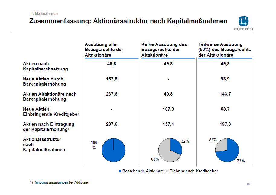 fast alles.Im günstigsten Fall werden alle Bezugsrechte ausgeübt und Conergy kommt dann mit einer grossen Potential wieder gestärkt aus der Ke heraus und hat dann seine Altlasten bezahlt.D.h. Das Unternehmen wird weiterhin von den Aktionären beeinflusst.Währen im 2ten Fall die Hedge Fonds das sagen haben,so haben im dritten Fall Hedge Fonds und Aktionäre das Sagen.
