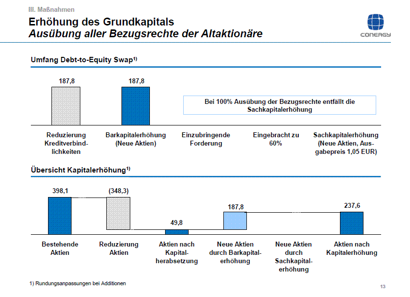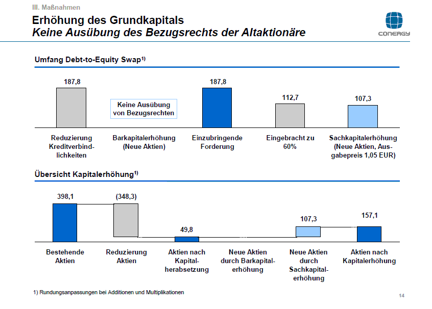 Wenn alle die Bezugsrechte ausüben,so braucht kein Hedge Fond hier einzusteigen und die Schulden werden dann alle zu ca 187,8Mio Euro gtilgt werden.Die Bezugsrechte gehen dann in neuen Aktien Über und di Anzahl der neuen Aktien werden dann zu 237,6 Mio.