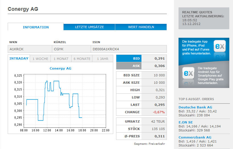 Hamburg / Heidelberg, 13. Dezember 2012 - Bereits im Mai hatte Conergy