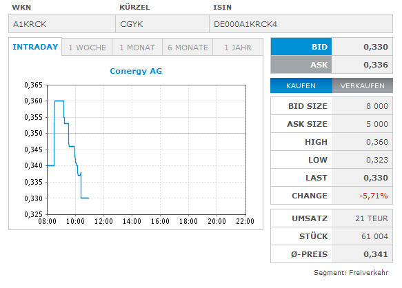 Das ist mal ein übler Schwinger und zeigt auf, daß es nicht reicht einfach ein par Tage oder gar Wochen alles schön zu reden. Rücksetzer sind jederzeit und heftig möglich und wenn die nächsten Zahlen noch schlecht ausfallen, dann gute Nacht! Da nützen auch die zig "Megaaufträge" nichts, bei denen Conergy sich ja eh immer ausschweigt, was diese überhaupt in die Kasse spülen. Alles was einzig mit Modulen zu tun hat nehme ich eh nicht ernst, da haben die inzwischen sicher genug auf Halde.