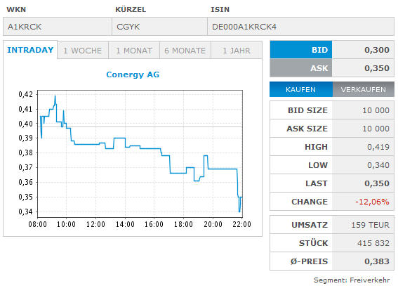 Conergy kein aktueller Kurs verfügbar
