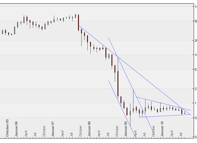 Ulm hat absolut recht. Du wechselst deine Kursprognosen auf Grund deiner Chartanalysen wie die meisten Leute ihre Unterwäsche. Wenn du mit deinen Analysen erfolgreich bist, dann mach auf jeden Fall weiter damit. Ich gönne es jedem, der sich bemüht, seinen eigenen Ansatz und Stil zu finden, zu verbessern und noch erfolgreicher umzusetzen. Verstehe meine Aussagen bitte nicht falsch, aber du zeichnest in meinen Augen viel zu unsauber und ohne System. Falls du ein paar automatische Kauf- und Verkaufsformationen nutzen möchtest, schau dir mal die Chartanalyse unter www.s-broker.de an. Die nutze ich ganz gern, um mein Einstiegstiming etwas zu verfeinern. Hat mir persönlich ganz gute Dienste erwiesen. Das soll auch keine Werbung sein. Sowas in der Art hat bestimmt jeder Online-Broker im Angebot.