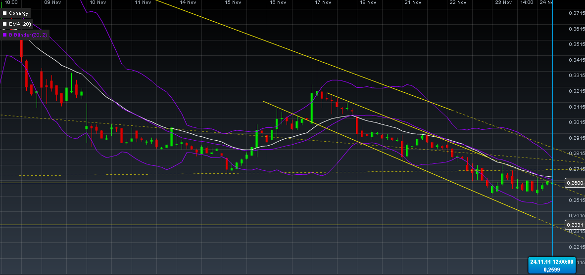 cony kämpft mit der oberen trendlinie . darüber wartet ema und mbb . also das wird kein spaß . da drüber wär auf jedenfall als ks zu werten . aber obb verläuft im 60iger bei 27,23..  also das große problem bei cony ist die sehr kleine range ..  is halt ein pennystock ..  also  normal invest über mbb oder abprall untere trendlinie ..    aber in diesem chart fehlen eh noch einige linien aber ich bin zu faul sie reinzumachen :(( .. hat auch evtl damit zu tun das ich hier nicht invest bin ..