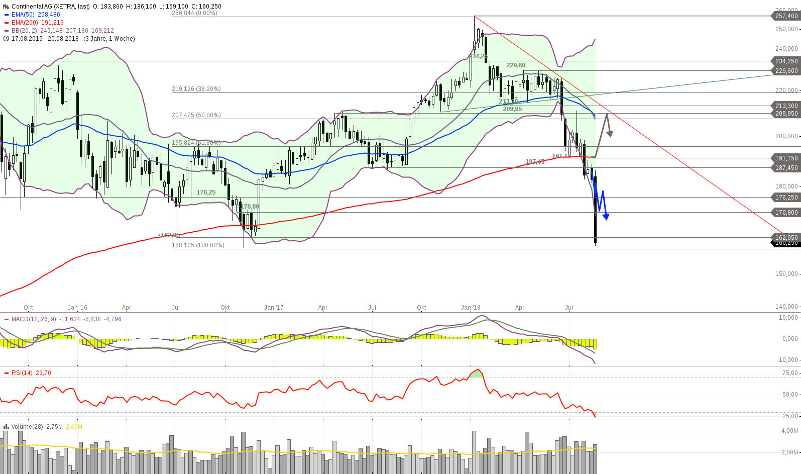 Heute Morgen gab es ein Paukenschlag bei Continental. Das Management kappt die Prognose für das Geschäftsjahr 2018 und sieht einen Rückgang des bereinigten operativen Ergebnisses auf +9 % (bisher: mehr als +10 %) und einen Umsatz vor Wechselkurseffekten im Gesamtjahr von rund 46 Mrd. EUR (bisher: 47 Mrd. EUR). Für das dritte Quartal sieht der Konzern einen Umsatz von rund 11 Mrd. EUR und ein bereinigtes EBIT von über 700 Mio. EUR. Außerdem wurden die Prognosen für die Automotive Group und Rubber Group gesenkt. Die Division Powertrain wird ebenfalls die ausgegebenen Ziele nicht mehr erreichen. Genauerer Details können der offiziellen Pressemitteilung entnommen werden.
