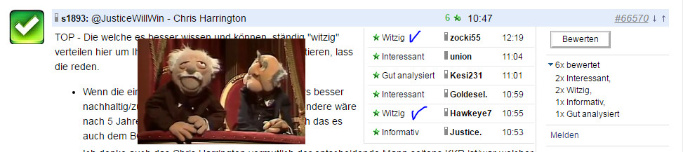 Es ist halt wieder mal so ein Posting, in dem das steht was die Leute hoeren wollen.
