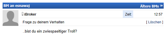 | Wertung | Antworten | Thema | Verfasser | letzter Verfasser | letzter Beitrag | |