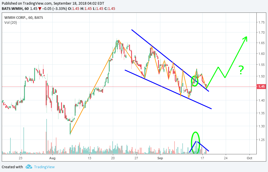 Ausbruch aus dem Bullish Fallenden Keil erfolgt unter höherem Volumen was typisch ist, und dann der ebenfalls typische Rücksetzer auf die obere Linie, die nun als Support dienen sollte.