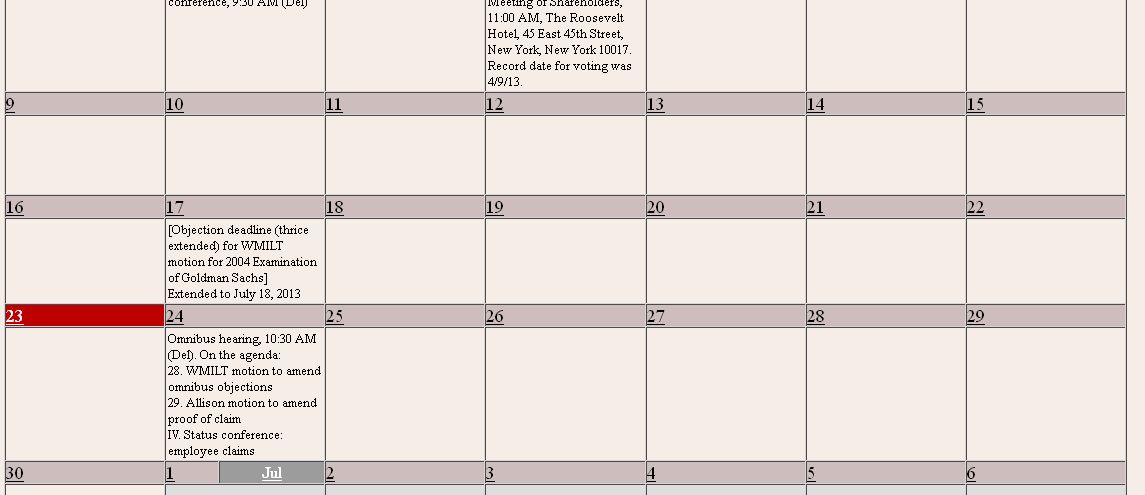 Vielleicht gibt`s ein Hearing, motion, objection, deadline, GS/SG-party oder so....