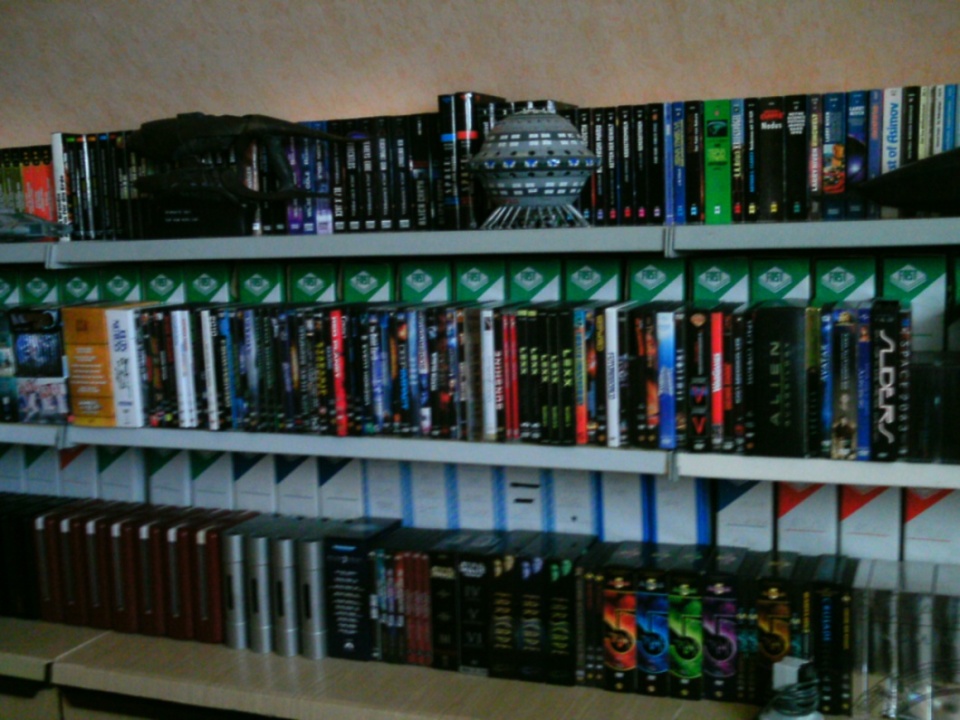 hinter die DVDs schauen. Jeder der Pappordner enthält 50 Romanhefte....
