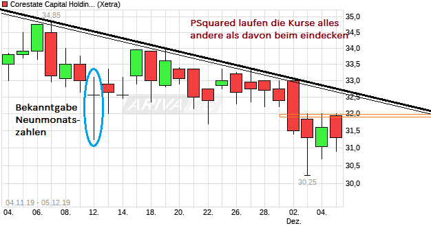 Trauere immer innerlich über jeden ASK der nicht über die Leitbörse läuft, was aber mein Problem darstellt. Offenbar sieht es PS Squered in umgekehrter Richtung ähnlich und deckt sich über Tradegate ein, damit es zu keinem übermäßigen short-squeeze kommt. Mein Fazit von heute: PS Squared ist bereit im Bereich von 31,20 € bis 31,80 € sich einzudecken, wobei ich der Meinung bin, dass sie die Stücke die sie unten einsammeln, wieder teilweise dazu nutzen den Kurs nach unten zu drücken, damit es nicht zu weit nach oben läuft. Dies dürfte in etwa so funktionieren, dass man die Stücke die man zu 31,15 € oder 31,20 € bzw. etwas höher eingesammelt zum Teil ins BID stellt, lassen sich ja wieder zu 31,60 bzw. 31,80 verkaufen, was pro Stück etwa 0,40 € Gewinn bedeutet. Ferner werden einige größere Verkaufsorders ins ASK reingstellt, damit der Kurs nicht zu schnell weiter nach oben läuft. Ergebnis: Verunsicherung und Verzweiflung bei den Anlegern, einsteigen oder abwarten? Kursanstieg gerade verpasst, es geht ja wieder nach unten, wer weiß wie tief, also Gewinne (sofern vorhanden) schnell noch realisieren und da wartet wieder PS Squared und bietet mal wieder 31,25 € oder 31,20 € an. Nimmt man die Zeitkomponente, etwas knapp über 2 Minuten für PS Squared um sich gewinnbringend einzudecken und anschließend wieder stundenlang einen Abverkauf zu veranstalten (und dies über Tage- und Wochen), dürfte jedem einleuchten, dass hier der Rest der Anlegerschaft psychologisch zermürbt wird, die im Lichte neuer Allzeithochs sowie der propagierten Weihnachtsrallye, immer wieder auf den Kurs schaut und sich wundert. Das Ganze dürfte in etwas so funktionieren, wobei dies nur meine Theorie ist.