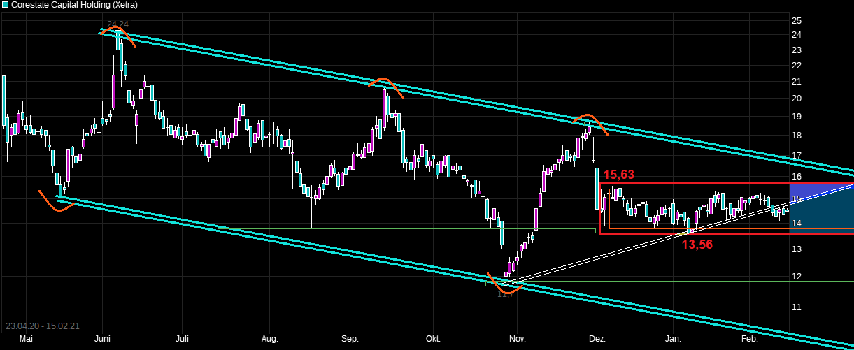 Die große Chance der Aktie liegt darin, dass man zur alten Profitabilität zurückfindet dann dürfte der Kurs in der Tat ordentlich anspringen. Persönlich handhabe ich es lieber so, dass ich erst bei klarer Faktenlage einsteige. Vielleicht steht Corestate dann schon bei 20 aber man hat auch viel Risiko umgangen. von 20 bis 30 wären immer noch 50 % und reichen mir. Weil jedem sollte klar sein, dass sich die Schuldenlast kaum verringert hat und falls die nächsten Quartalszahlen nicht passen es auch mal schnell 20 % runtergehen kann.