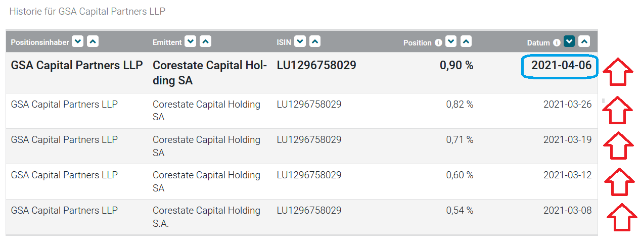 Und LV sind keine Samariter die dem Markt helfen falsche Überbewertungen zu finden und so eine heilsame Korrektur herbeizuführen. Das ist eine Mähr die die LVs befeuern um ihre krummen Geschäfte zu rechtfertigen. Sie könnten ihre Berichte (ob sie nun wahr sind oder frei erfunden) so veröffentlichen und aufs Leihen der Aktien verzichten. Tun sie aber nicht, weil sie den Kurs herunterprügeln wollen. Und bei Corestate haben die LVs keine Berichte veröffentlicht. Wo sind da die Hinweise die dem Markt helfen sollen einen fairen Preis zu finden?