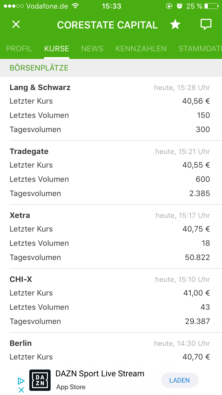Bin mal auf die Zahlen und den "Earnings-Call" gespannt. Aber Corestate ist sich treu geblieben, ca. alle 2 Wochen immer Mal eine DGAP. Mal sind es neue Personalien, mal Infos zu Verkäufen oder Unternehmenszukäufen. Man kann denen nicht vorwerfen, dass sie eine schlechte IR hätten.