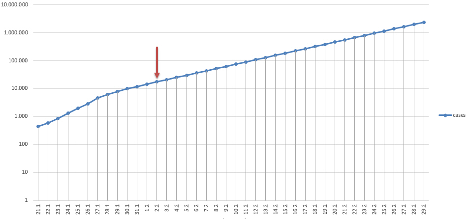 Ich bin gespannt, wie es am Montag weitergeht. Die Fallzahlen sind -offiziell- auf fast 15.000 gestiegen, daher bestätigt sich weiterhin meine Annahme, dass China für Wochen oder Monate still stehen wird.