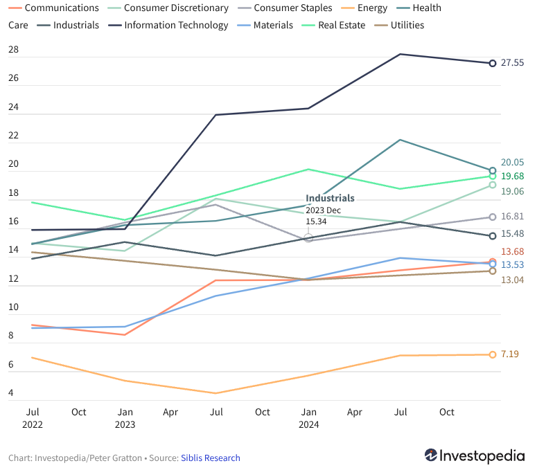 Unten (Anhang): US-Large-Caps EV/EBITDA by Sector