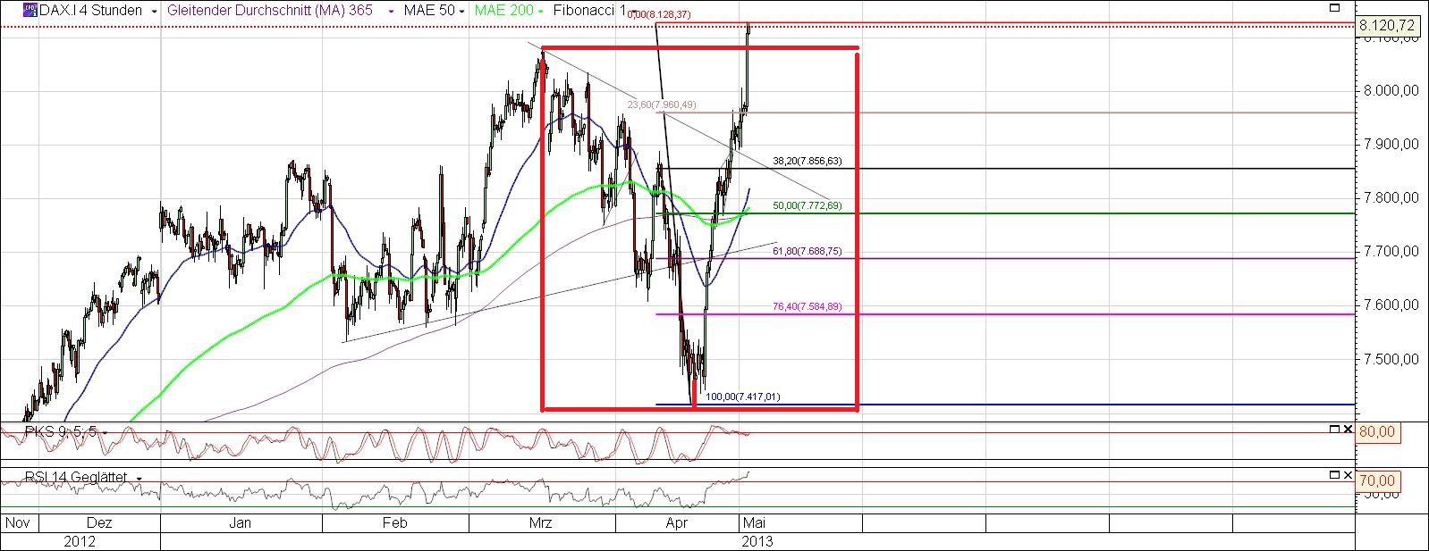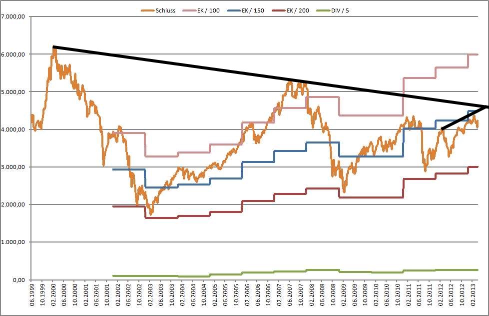 - Der normale DAX enthält bereits ausgezahlte Dividenden. Er zeigt schön an, welche Performence man als Anleger erzielen konnte, aber gleichzeitig erscheint das AT-High erreichbar, wobei die Unternehmenspreise noch ca. 1/3 unter dem AT-High liegen.