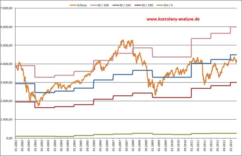 Meine Meinung ist daher, dass der DAX sich nicht von der Realwirtschaft abgekoppelt hat, sondern in 2013 erst die Realwirtschaft wieder eingeholt hat. Der DAX war aus meiner Sicht in den Vorjahren somit relativ günstig zu haben.
