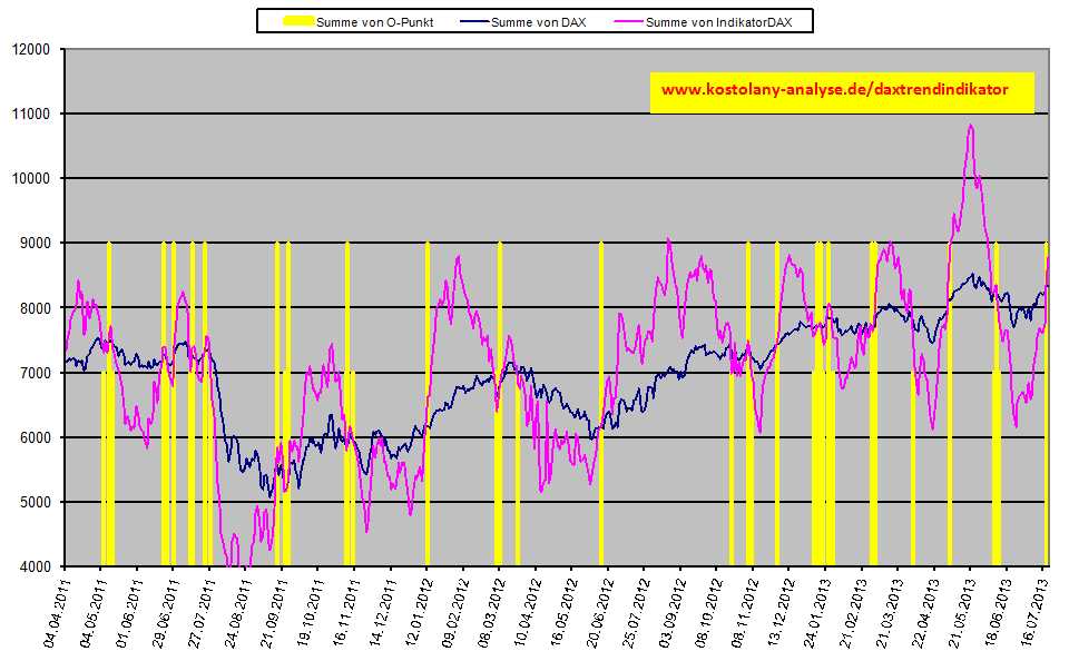Meine Meinung: Der Dax wird bis zur Bundestagswahl das ATH nochmals schlagen. Nachrichtenlage ist dünn und eher positiv und es herrscht sonnige Urlaubsstimmung bei hohen Temperaturen. Die Themen Euro-Schuldenkrise, Schuldenschnitt f. Griechenland, Jugendarbeitslosigkeit…werden erst nach der Wahl aufgewärmt. Ich denke, dass zum Jahresende oder spätestens im Frühjahr 2014 die o.g. Themen massiv ins Bewusstsein der Bürger zurückkehren werden und dies nicht spurlos an der Finanzwelt vorbeizieht. Denke, dass es dann zu kräftigen Korrekturen kommen wird.