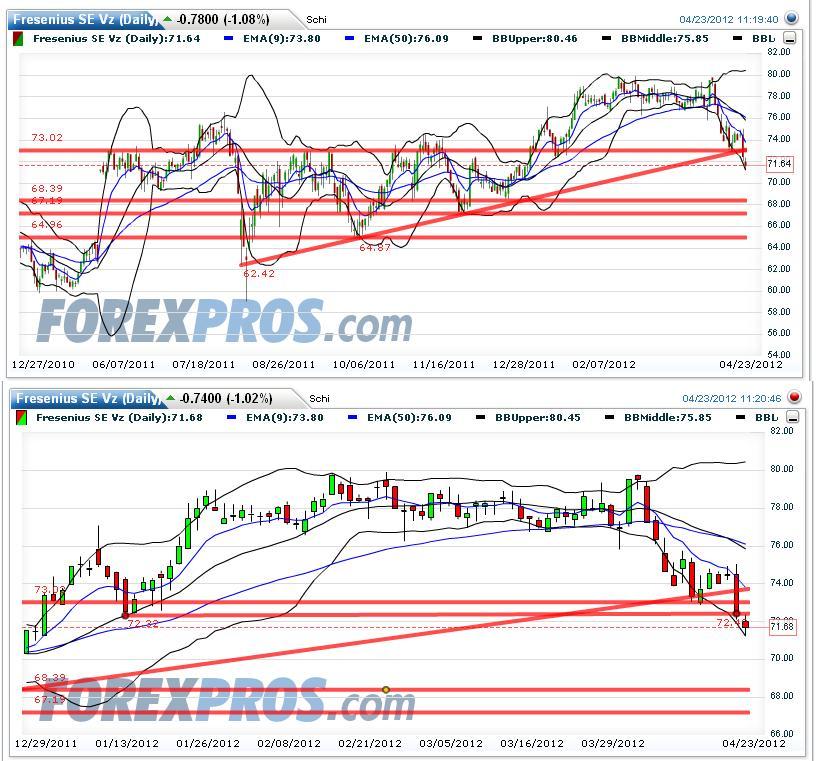 Der Dax hat seine 1-2-3 heute mit einem Showdown aufgelöst! Im Dax ist nun problemlos Platz das Gap direkt zu holen. Eine Kontraposition short - um die Aktie zu covern, halte ich aus diesem Grund für entbehrlich. Jedoch ist es überlegenswert, den Wert nur auf Bewegung zu traden und nicht auf Trend. Ich bin mir aber noch nicht ganz sicher, da man die Position schön lange halten könnte, wenn man wollte. Ich werde es diesmal vom Index abhängig machen und ggf. die Position manuell schließen.