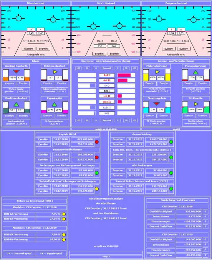 Negativ: Anlagendeckung hat sich durch die Erstaufnahme von Leasingverbindlichkeiten in Höhe von ca. 138 Mil. € minimal verschlechtert. Nettofinanzforderungen um ca. 217 Mil. € nachlassend, mit Folgen für Liquiditätskennzahlen und Working Capial Ratio.