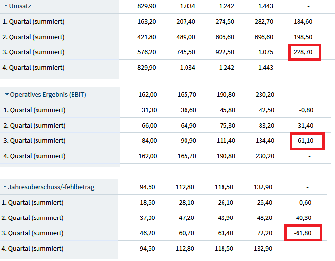 Der höchste Verlust den es jemals gab. Der Umsatz liegt in dem Bereich (vor 2008) als man für die Aktie unter 5 € bezahlt hat. Es gibt über den gesamten Vergleichszeitraum kein einziges Jahr, das jemals so übel war. Und für das nächste Jahr wird es zumindest im 1. Halbjahr auf keinen Fall besser. Die Beschlüsse der Regierung zum Thema Veranstaltungen sind eindeutig.