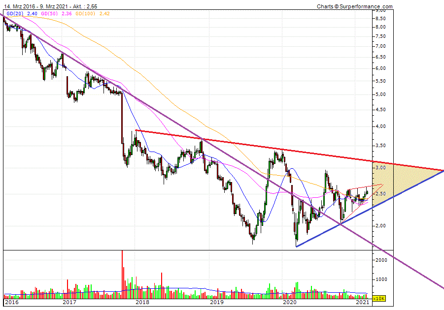 entspannt. Ich sehe hier strukturelle Wachstumstrends, die am mittelfristig zu 150 Mill. Ebit führen werden. So wie der Kurs ab 2016 mit den sinkenden Ergebnissen abwärts ging, wird sich dies auch wieder umkehren. Die 2 EUR an Immovermögen gibts obendrauf. Hinzu dürfte es spätestens mit dem kommenden Jahr wieder eine Mindesdivi von 10 Cent geben. Wenn es für dieses Jahr wieder keine Divi geben sollte wären wohl Aktienrückkäufe eine gute Alternative. Also dürfte noch was gehen in den kommenden Jahren, deutlich tiefer als 2 EUR wird es jedenfalls nicht mehr gehen. Da lege ich mich fest.