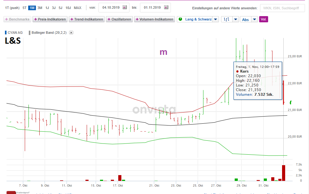 Wie auch immer man seine Kosten bis dahin in den Griff bekommt, ich hoffe trotzdem, dass man bis 2021 60 Mio an wiederkehrenden Umsätzen erreichen kann. Da diese Umsätze, wenn einmal erzielt, dann kaum mehr Kosten mit sich bringen. Deshalb sollte auch die Marge mit der Zeit deutlich steigen. An der Börse sollte dafür, je nach Marge, ein Umsatzmultiple von 5 bis 10 drin sein. Sodass wir bei Kursen zwischen 30 und 60 liegen könnten. Nach zukünftigem Gewinn wage ich Cyan schon gar nicht mehr zu bewerten. Das ist mir zu grob abschätzbar.