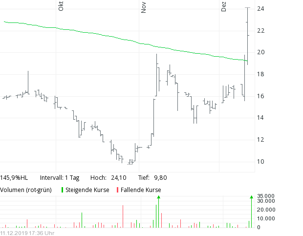 "Darüber hinaus können bei starker Nachfrage bis zu 550.000 Aktien aus dem Bestand der bestehenden Aktionäre Herr Alexander Schütz, Apeiron Investment Group Ltd. und Tansanit Stiftung platziert werden ("Upsize Option"). Die Entscheidung über die Ausübung und Größe der Upsize Option wird bis spätestens morgen früh, 10. Juli 2019, vor Börseneröffnung getroffen."