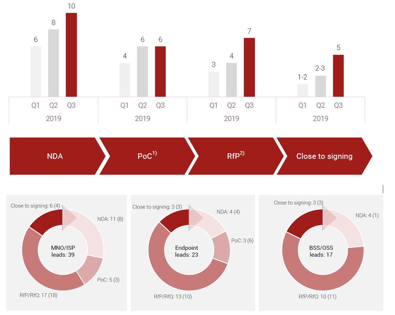 Da ja auch oft kritisiert wird, dass diese Lead-Pipeline nicht viel aussagen würde, lohnt evtl. eine Überlegung, was mit den 5 Leads "close to signing" aus August 2019 passiert ist.