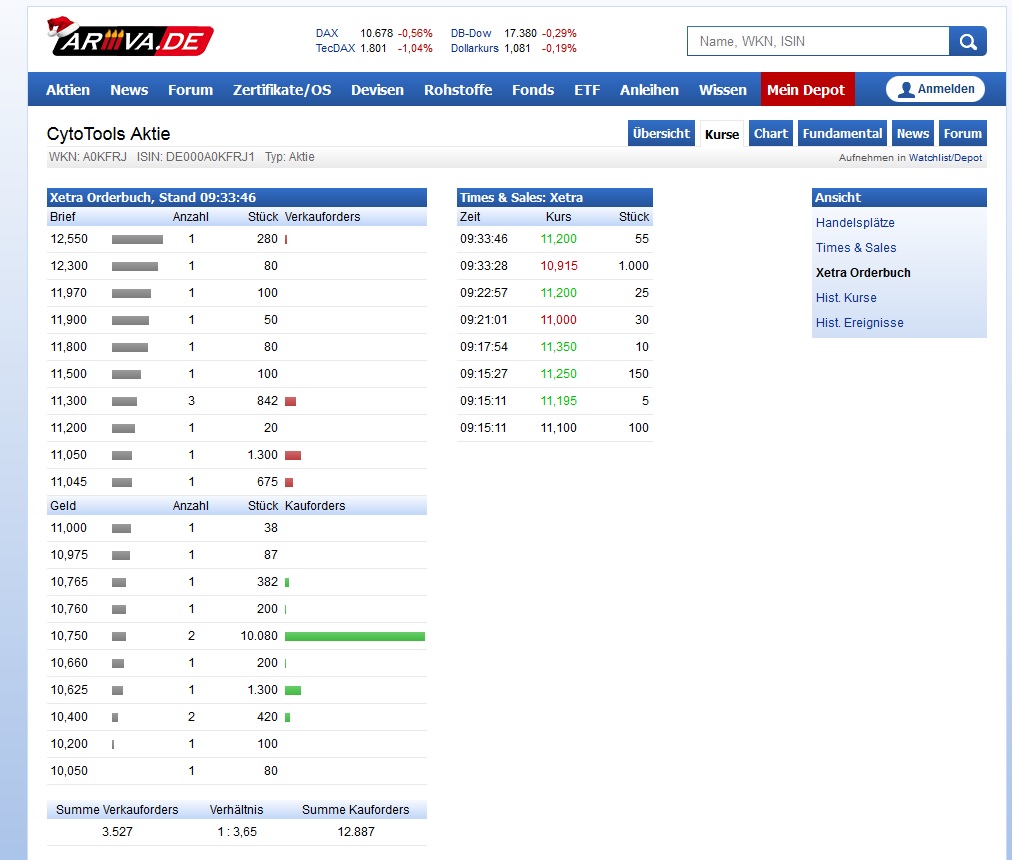 Am besten wären News nachbörslich oder am Wochenende. Dann werden diejenigen belohnt, die weiter an Cytotools glauben.