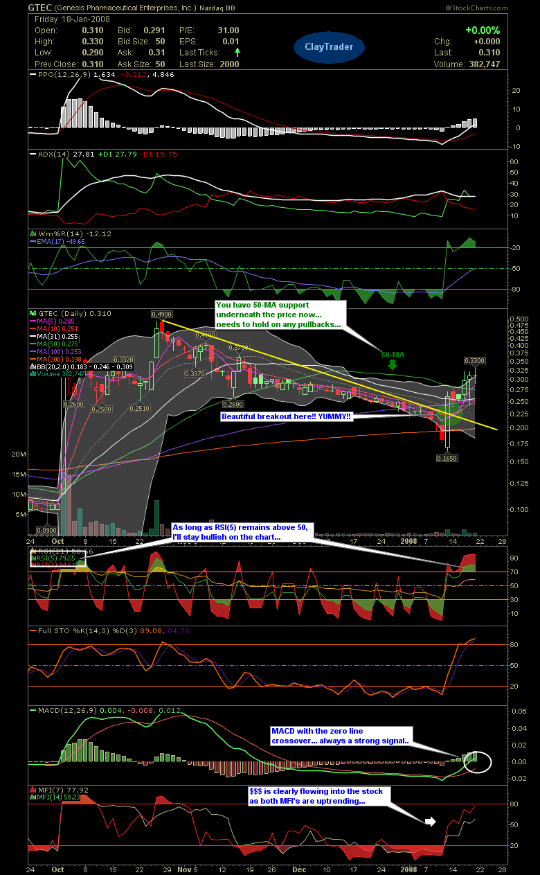 I am pleased to report that the final terms of the merger were completed on October 1, 2007. As a result of the merger, Genesis Pharmaceuticals Enterprises, Inc. is listed on the OTC Bulletin Board and trades under the symbol "GTEC."