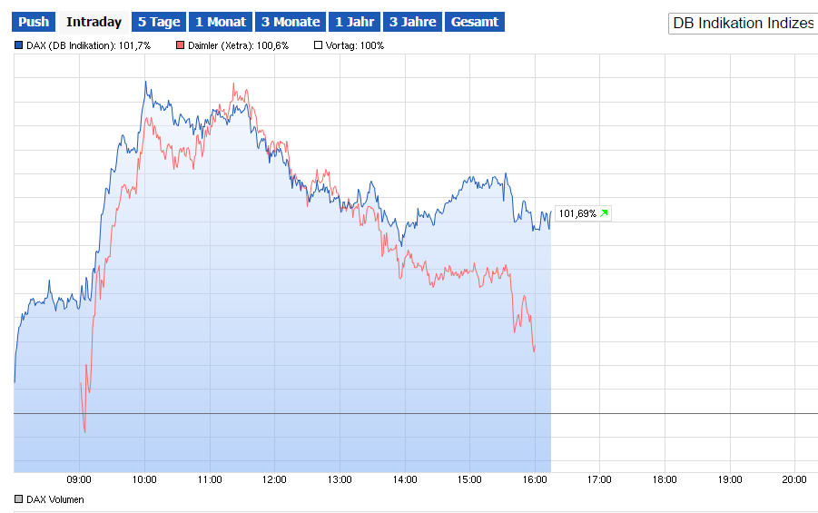 Was mich noch etwas misstrauisch macht ist einerseits der starke Euro und andererseits die sinkenden Ölpreise, die den DAX und somit auch Daimler belasten. Den Einfluss des US- Zinsentscheids sehe ich als positiv für den Daimlerabsatz, ob die Entwicklung, wie alle vermuten auch so kommen wird bleibt fraglich. Glaube kaum, dass die FED ihrem "ZINSPLAN" treu bleiben wird.