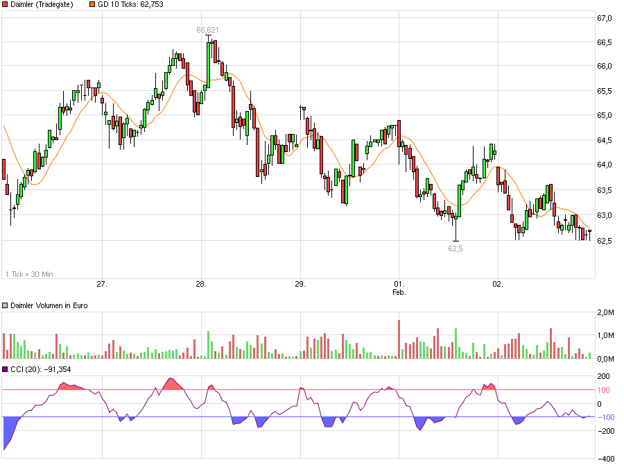 Ich frage mich, was von Donnerstag erwartet wird. Was man auch liest, jeder rechnet mit guten Zahlen für 2015 und einer Dividende von 3 Euro und mit einem Ausblick, der weiteres Wachstum verspricht, wenn auch nicht in der Größenordnung von 2015 sondern eher im einstelligen Bereich. Aber die Börse sagt etwas anderes. Wenn man den Kurs anschaut, muss man davon ausgehen, dass Daimler die Erwartungen für 2015 nicht erfüllt und der Ausblick für 2016 rückäufig ist. Die dividende dürte 2016 eher nicht weiter erhöht werden. Wie gesagt, so interpretiere ich die Kurse.