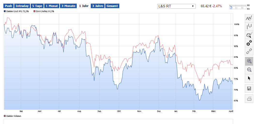 ...sondern in der generell schwachen Kauflaune für deutsche/europäische Aktien sowie negativ abstrahlende Themen wie die Abgasdiskussionen und die theoretische Möglichkeit, dass Daimler da theoretisch auch getrickst haben könnte. Die Verkaufszahlen sind auch in diesem Jahr bisher mehr als gut und besser als erwartet.