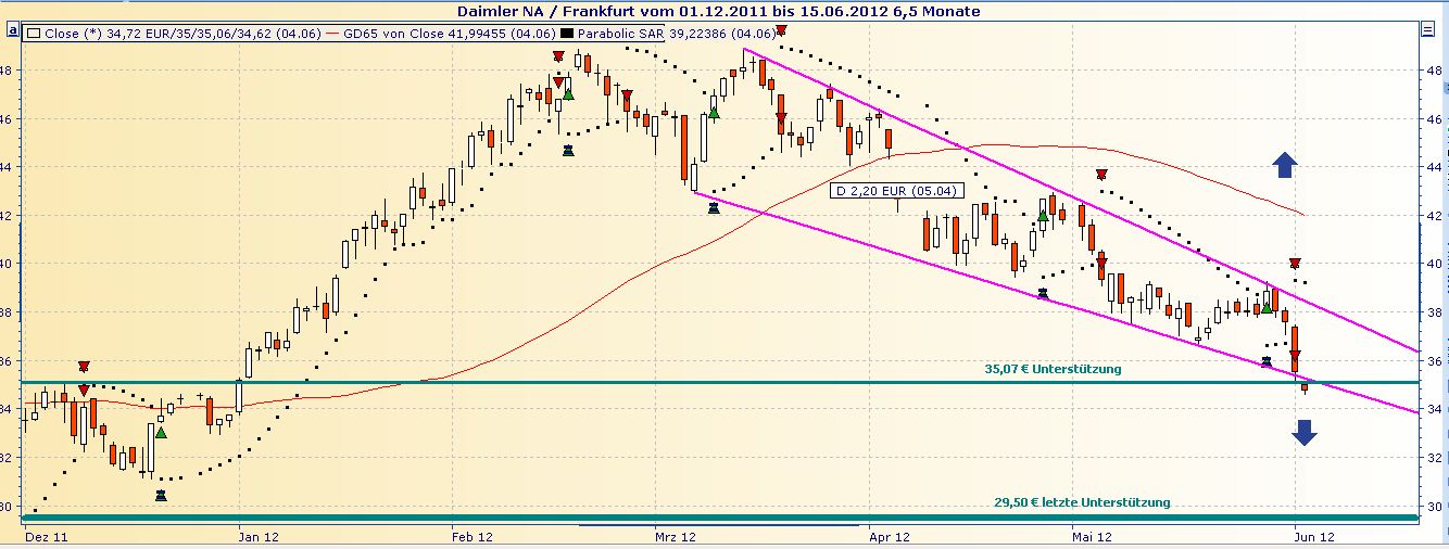 Erst wenn Daimler in Richtung 33 € geht, kann man sich überlegen, mal eine Teilposition nachzukaufen. Ganz sicher geht man, wenn man bei 30 € kauft. Hier macht man sicherlich nicht viel falsch! Die Frage ist, wie geht der ganze Europa Dreck weiter?