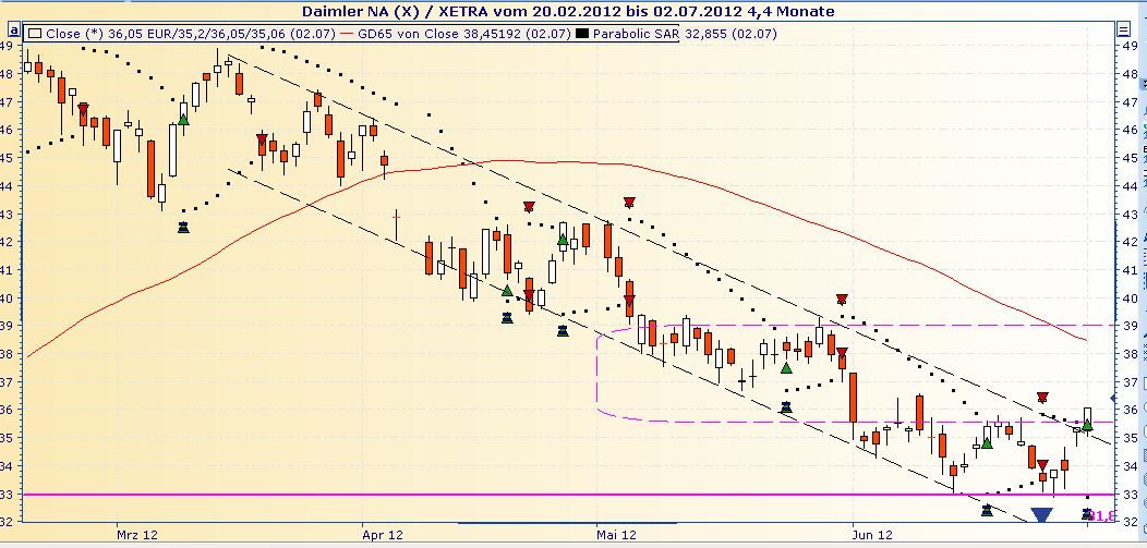 na heute geht die Post ja wieder ordentlich ab! Mal sehen, wie lange das anhält. Daimler müsste langsam recht heiß gelaufen sein, oder FairSpirit?