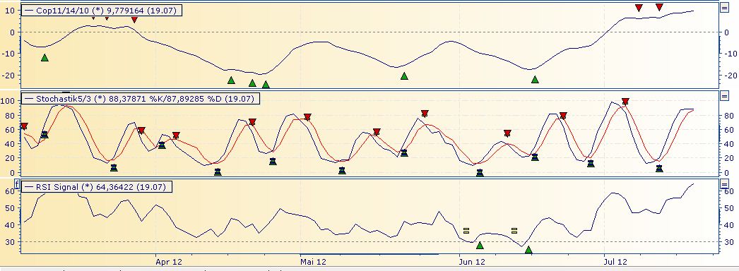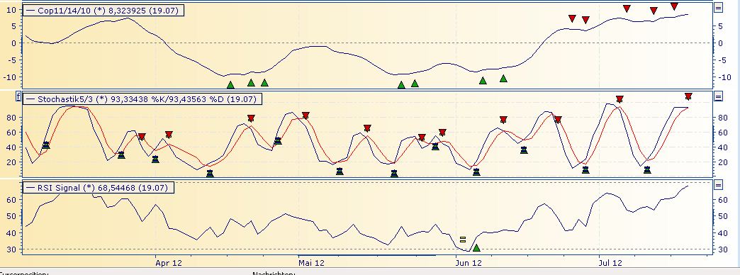 Alles klar! Du hast natürlich Recht bezüglich der Vorhersage ...; man ist ja kein Prophet, dessen bin ich mir auch voll bewusst, und daher interpretiere ich stets, das, was mir zur Verfügung steht; ob das nachher zutrifft, das ist die große Frage. In der Auslegung der Fakten bin ich mir ziemlich sicher, dennoch macht einem der Markt (Käufer-/Verkäufer-Verhalten) oftmals einen Strich durch die Rechnung; das ist zur Zeit der Fall, wo alle Indikatoren zur Vorsicht mahnen, der Kurs jedoch munter seine Richtung fortsetzt. Jeder ist aber eingeladen, seine eigene Prognose zu erstellen, daher stelle ich zu den Indikatoren auch noch den Chart ein, damit die Argumente untermauert sind. Wie sagt man so schön?: Meine Ausführungen sollen aber nicht so verstanden werden, dass sie vielleicht als Handlungsbedarf ausgelegt werden sollen.