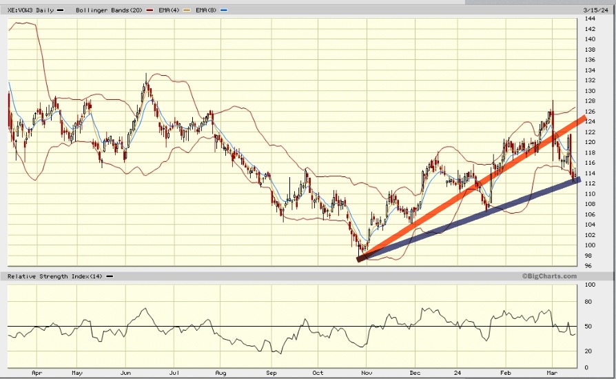 Ich gehe davon aus, dass VW bis Mitte Mai zum Ex.-Div.-Tag mit Sicherheit noch ordentlich zulegen wird, sehe aber auch die deutlichen Schwankungen. Deshalb kaufe ich gerne bei fallenden Kursen in kleinen Häppchen nach und trenne mich von einem Teil, wenn sie wieder gestiegen sind. Das senkt auf Dauer deutlich meinen MEK und trotzdem habe ich die "Chance", eine ordentliche Dividende zu kassieren. Mein EK war ab 03.03.2022 zu 159,58. Mittlerweile habe ich es geschafft, durch konsequentes Hin und Her mit kleineren Beträgen meinen MEK auf 120,73 zu drücken.
