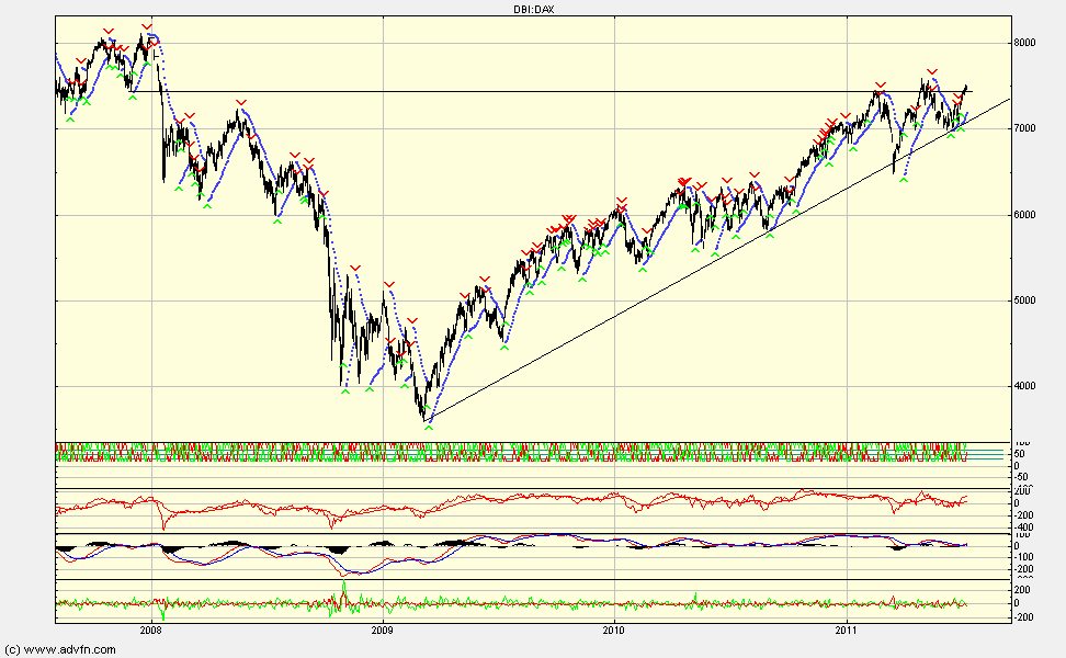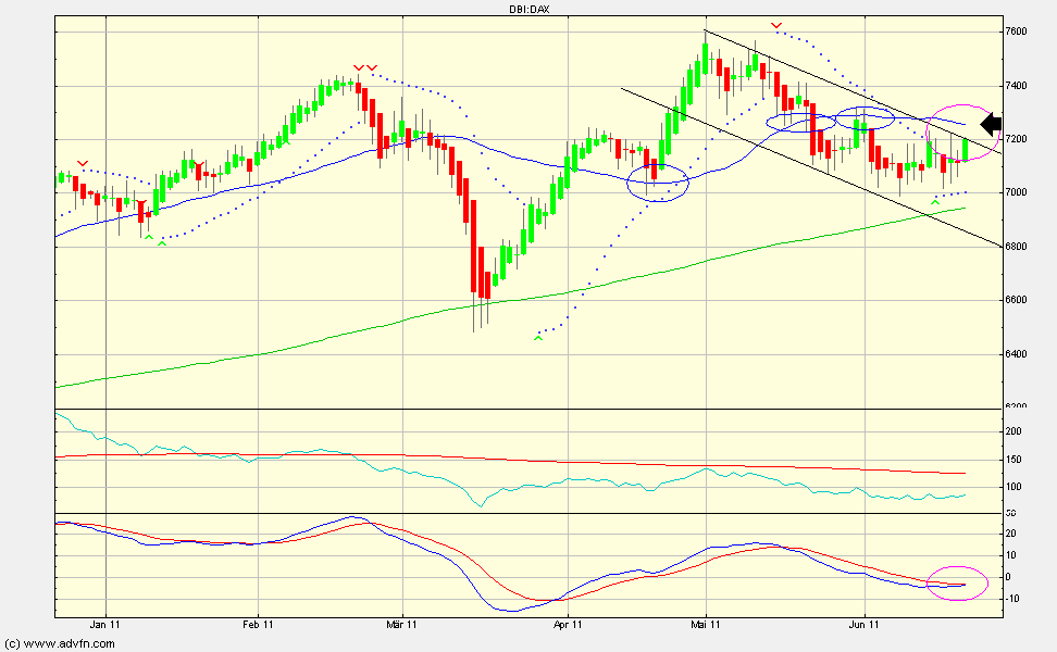 oh ja, dies war ein börsenthread... nun, geschlossen habe ich mit den worten "gunst der stunde" und die macher haben wirklich einen guten job gemacht ! gegangen bin ich bei 6.100 pkt. im dax - die 7400 heute sprechen eine deutliche sprache. "mission accomplished" ! gut, es tat sich viel seitdem. und es wird sich viel tun. doch fangen wir klein an. schauen wir, rein sachlich mal, auf den markt. auf mein 3 von 5 system. erprobt. bewährt. und definitiv verbesserungswürdig. kurzum - um chart seht ihr 5 indikatoren. stehen 3 von diesen auf long oder short, wird diese seite gespielt. ob bennie b. nun qe4 beschließt oder merkel greece okkupiert ist dabei irrelevant. lesson one: beim handel keine emotionen ! aktuell stehen noch 3 auf short. ok, ich liege perse 100 pkt. hinten und wenn ich morgen bei - 150 pkt. drehen muss, weil 3 indis auf long stehen... shit happens, auf lange sicht zahlt es sich aus... und es ist in den letzten monaten schon viel passiert ;)