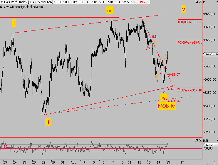 "Ausgehend von 6480 dürfte der Dax zurückfallen bis 6443, dann anschließend eine Aufwärtsbewegung bis 6500/6520. Zwischen 6420 - 6520 weitgehend neutral. Oberhalb 6530 beginnt Sommerrally."