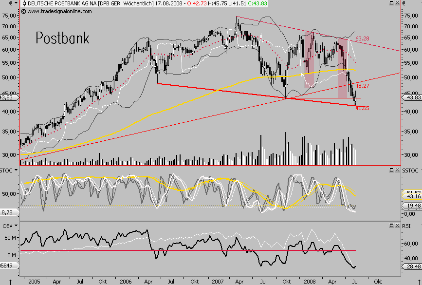 Bis zur Veröffentlichung der US-Konjunkturdaten verlief der deutsche Aktienhandel sehr lustlos, jedoch mit einer leicht positiven Note. Nach der Datenveröffentlichung drehte der Markt in die Verlustzone, da die US-Verbraucherpreise mit einem Wert von 0,8 % doppelt so hoch wie erwartet ausgefallen waren. Schlussendlich konnte sich der Dax, mit Hilfe des nachgebenden Ölpreises, behaupten. Das Kursplus betrug 0,20 % auf 6.442,21 Punkte. Interessant ist die Tatsache, dass das gehandelte Volumen bei Aktien, welche Kursverluste verbucht haben, erneut höher ausfiel. Neue (zwischenzeitliche) Jahrestiefs wurden u.a. bei der Deutschen Postbank, RWE, Deutz, ElringKlinger und bei der IKB ausgebildet. Die beste Tagesperformance unter den Stoxx-Sektoren konnte der Bereich Basic Resources vorweisen. Mit dem im Tagesverlauf markierten Tief bei 6.369 Punkten wurde ein neues Impulstief (fallenden Hoch- und Tiefpunkte als ?Trendbestätigung?) ausgelotet. Bemerkenswert ist jedoch, dass die wichtige Supportzone ( ein sog. Cluster) zwischen 6.392 und 6.354 Zählern zunächst gehalten werden konnte. Dennoch kann festgestellt werden, dass sich der Dax weiter von seiner ehemaligen Aufwärtslinie entfernt hat, so dass der Bruch nach unten einen zunehmend nachhaltigen Charakter aufweist. Definitionsgemäß kann unter technischen Gesichtspunkten davon ausgegangen werden, dass nicht nur die Aufwärtskorrektur abgeschlossen, sondern darüber hinaus der ?Startschuss? für eine negative Fortsetzungsformation geben wurde. Das nächste Unterstützungslevel findet sich bei 6.290 Zählern. Weitere wichtige Marken finden sich dann bei 6.166 und 6.084 Punkten. Heute könnte der kleine Verfalltermin an der Terminbörse für die eine- oder andere Verwerfung sorgen.