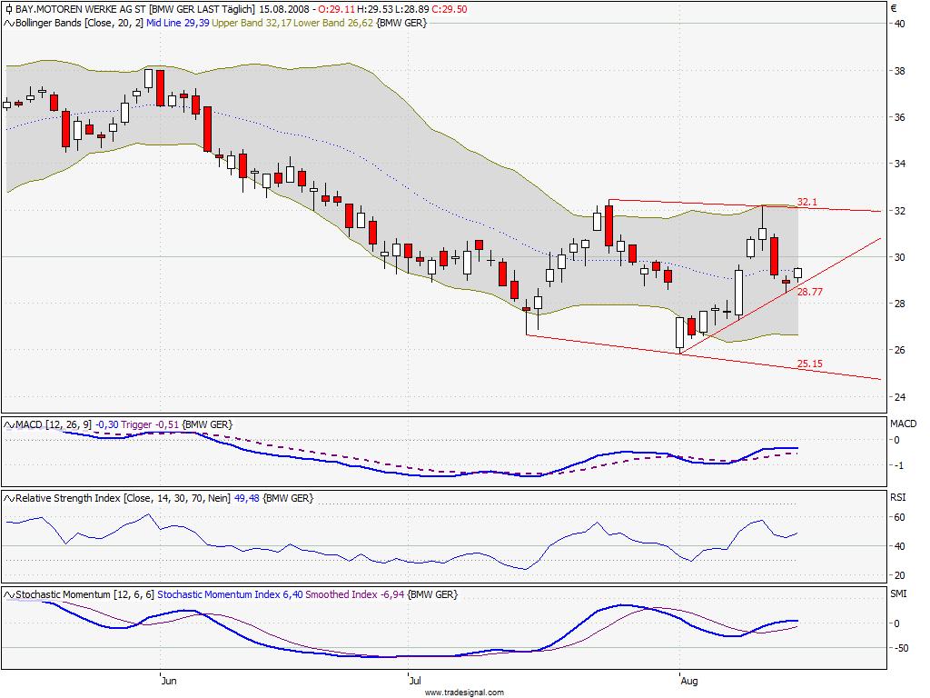 Mit dem intraday-rebound ist es dem Dow Jones erneut gelungen, die seit dem 15.07. bestehende Aufwärtslinie zu verteidigen. Es scheint sich herauszukristallisieren, dass die Supportmarke bei 11.450 Punkten einen sehr nachhaltigen Charakter aufweist. Dennoch sollte man nicht den Fehler begehen, sich allzu sicher zu fühlen. Denn wird die genannte Marke unterschritten, wären die Levels von 11.226 und 11.072 Punkten die nächsten Kursziele. Auf der Oberseite wirkt die Marke von 11.677 Zählern als Widerstand.