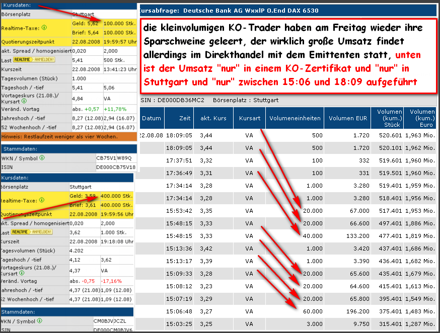 Falls wirklich jemand einach mal so lustig "bin strong long bei DBK" o.ä. gepostet hat, gabs von AS immer was zwischen die Hörner bzw. eine kurze Anmerkung bzgl. der Sinnhaftigkeit einer solchen Aussage und bei wiederholtem Foulspiel die "rote Karte"!