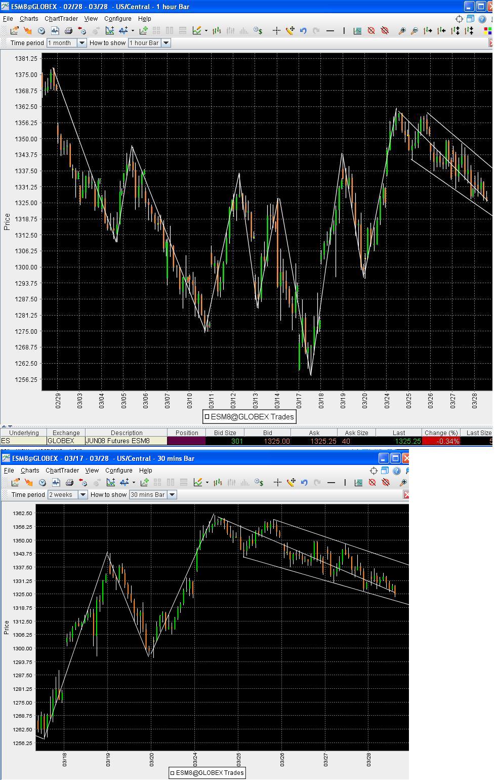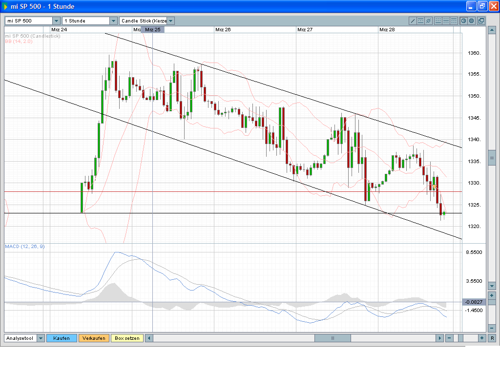 Aber wie Du schon geschrieben hast handel was Du siehst und da sehe ich im Moment einen intakten Abwärtstrend und versuche den zu handeln mit Ziel untere Kanalbegrenzung.
