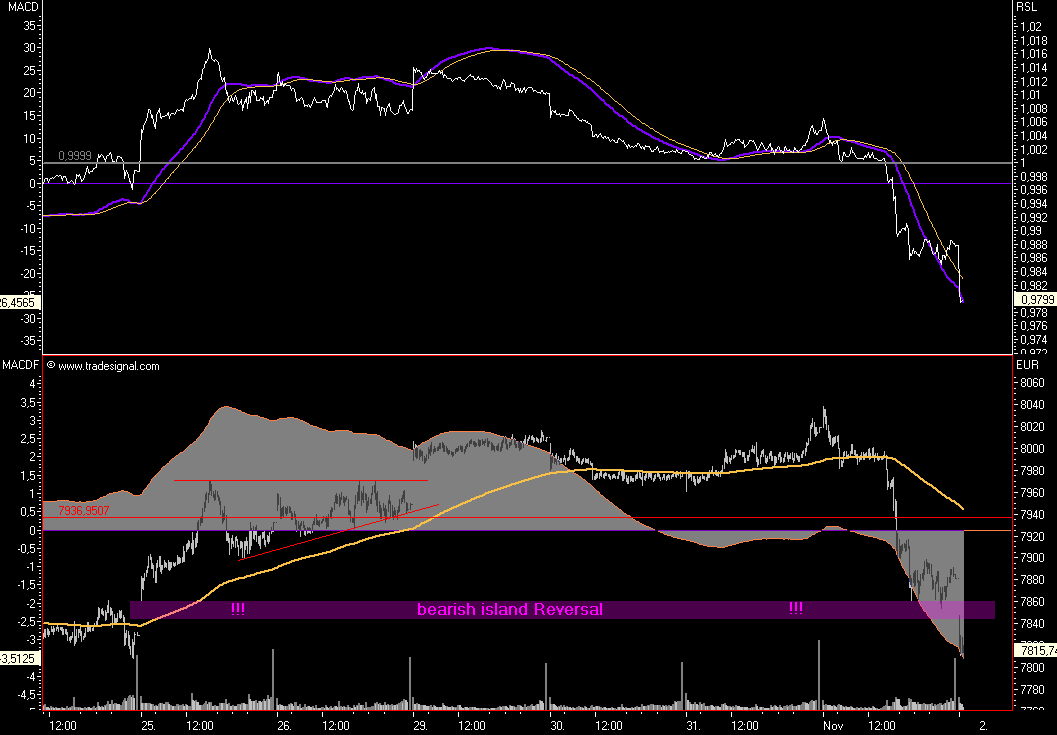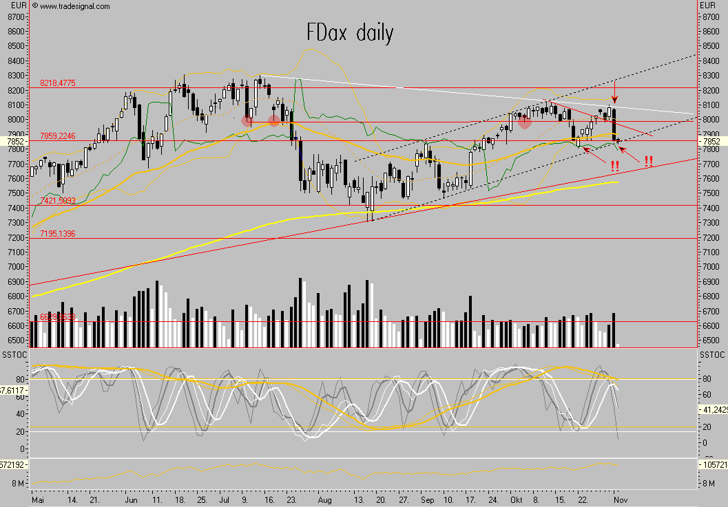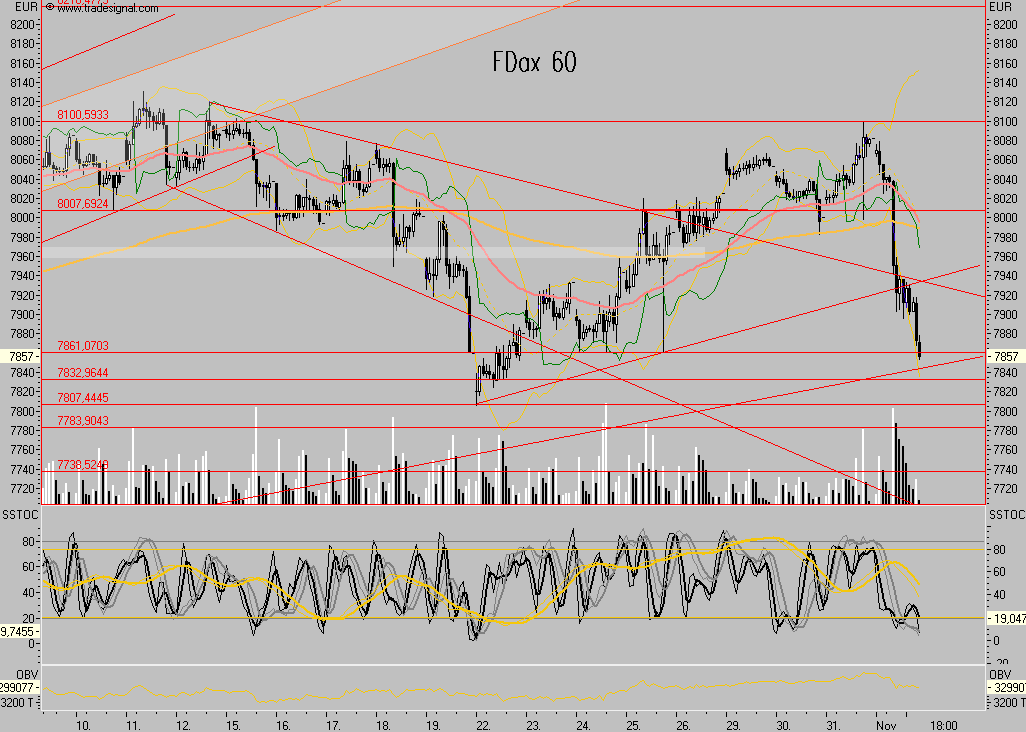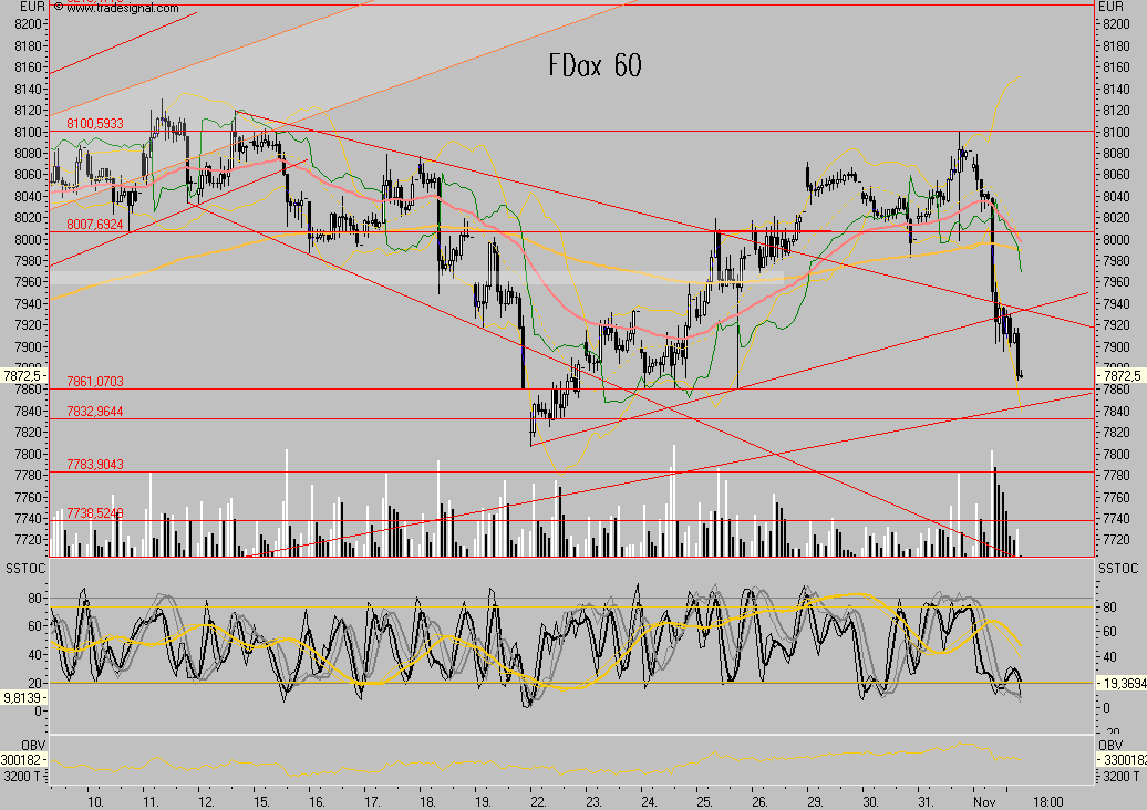 die Dynamik ist sehr hoch und es gibt bisher so gut wie keine technischen Erholungen, alle Retracements im kurzfristigen Bereich sind gebrochen, insofern sind die nächsten objektiven Ziele bei FDax 7861 und dann 7832 sowie 7807, letzteres wäte ein in-time down und würde spätestens nach Korrektur weitere Kursverluste implizieren