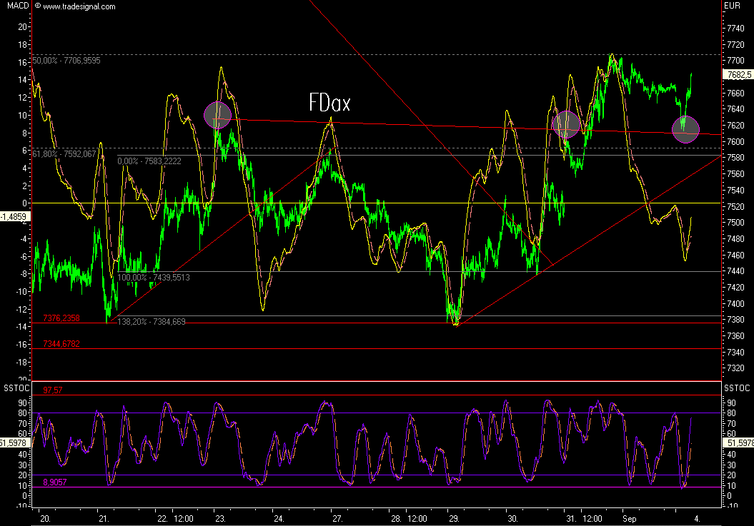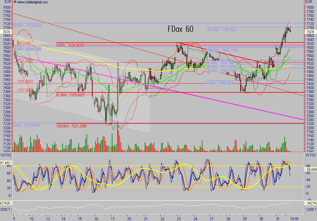 Die beschleunigten Bewegungen innerhalb des Aufwärtstrend deuten auf einen starken Ausbruch hin. Tendiere ja im Moment auf einen Ausbruch nahe an das Hoch um eventuell dann den wirklich starken Ausbruch in die Tiefe zu fahren.